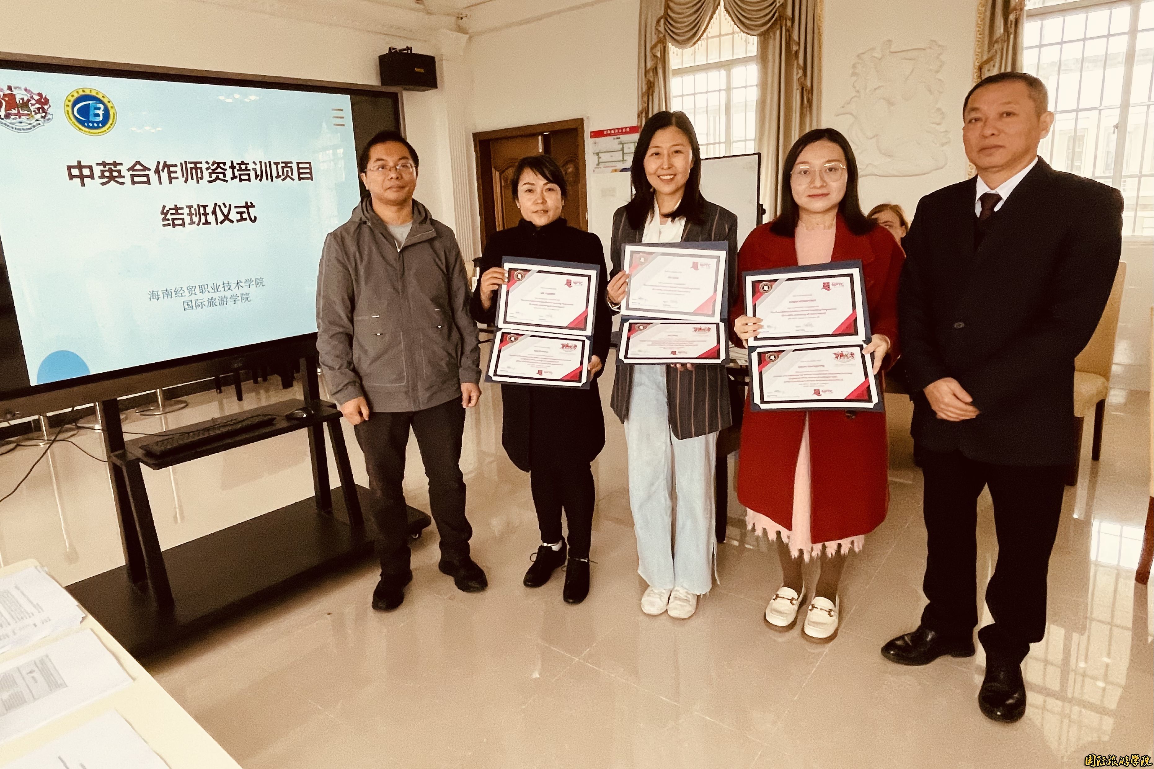 在结业仪式上,国际旅游公司党总支书记院孙金和英方代表中国中英职业教育卓越中心(CEBVEC)副总裁吴章程先生共同为所有已满足结业要求的参训教师分别颁发了获得英国威尔士政府认可的、具备研究生水平、在全球具有国际通用性的CPGE国际教师证书。