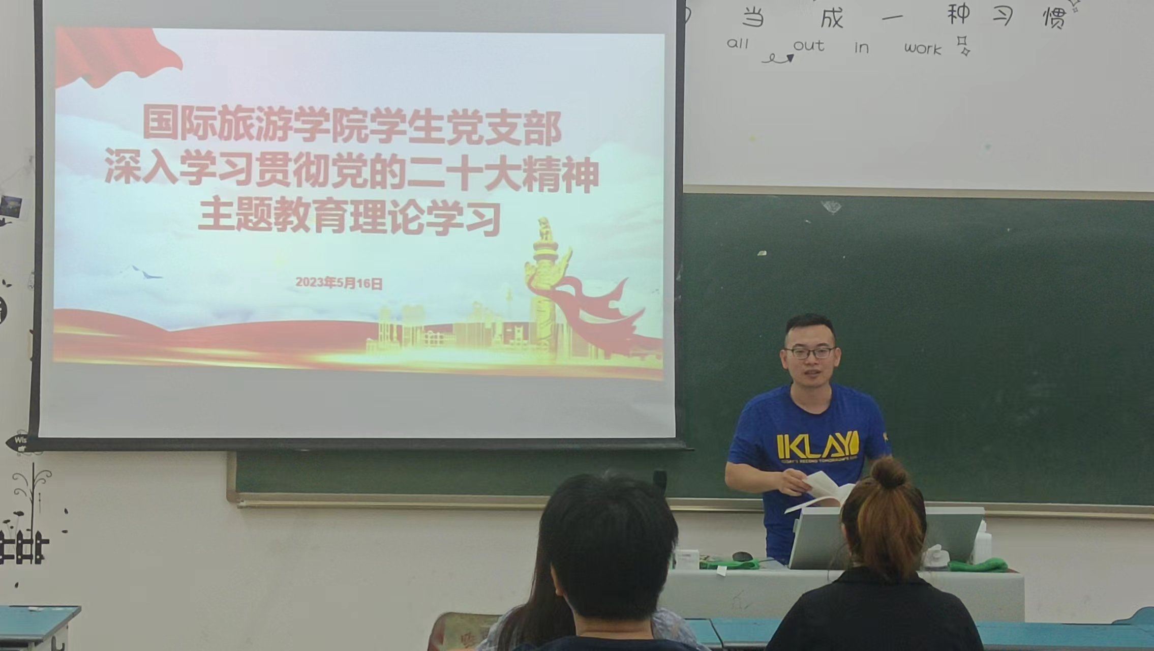 为持续深入学习贯彻党的二十大精神,5月16日下午,taptap点点员工党支部第三次学习贯彻习近平新时代中国特色社会主义思想主题教育理论学习活动在2-205开展。党支部老师樊靖带领员工党支部在校员工党员、预备党员进行学习。