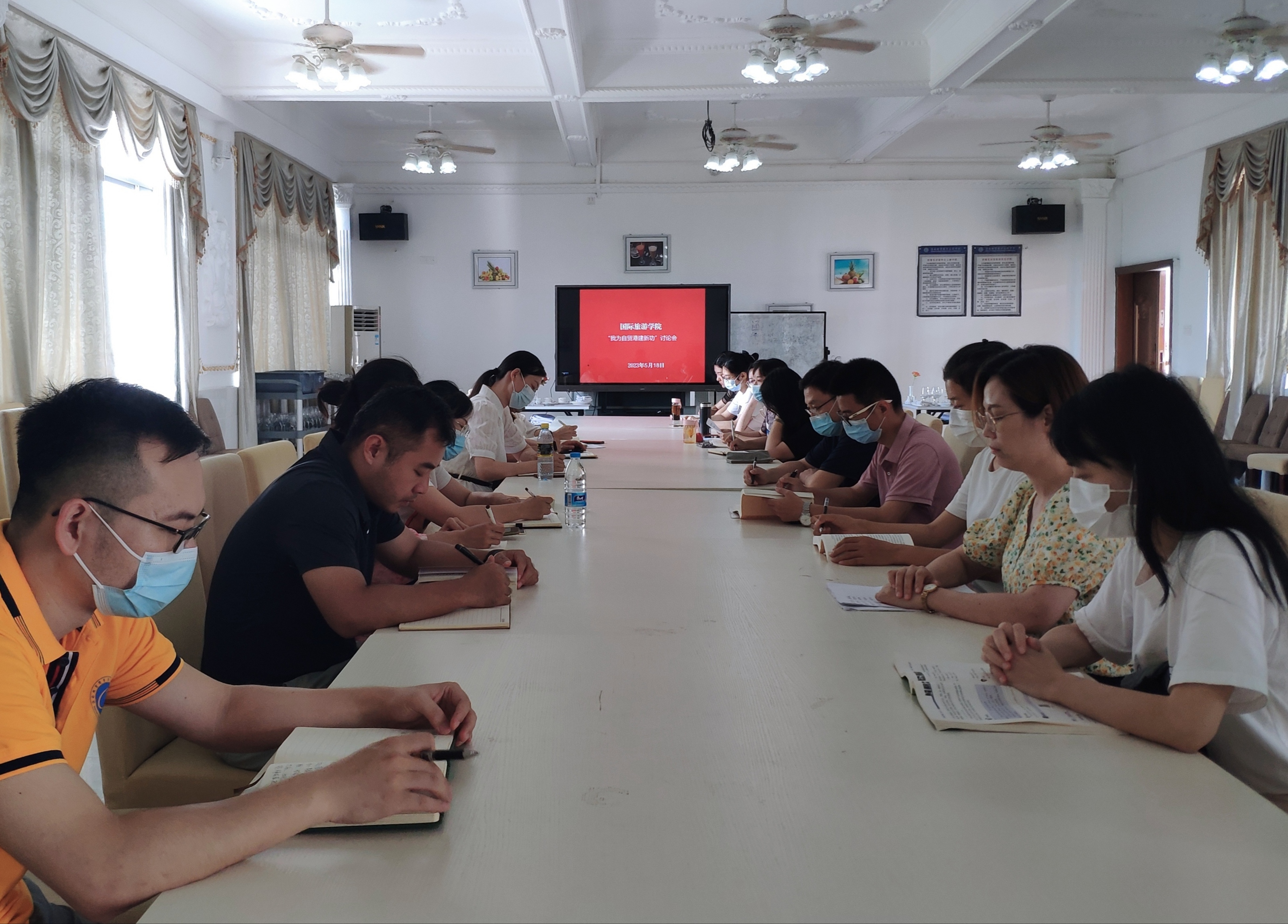 5月18日,国际旅游公司党总支开展“我为自贸港建新功”讨论会,公司党总支书记孙金、党总支副书记刘萍男、副经理王晓明、各专业教研室负责及全体教师党员参加讨论会。孙金主持会议。