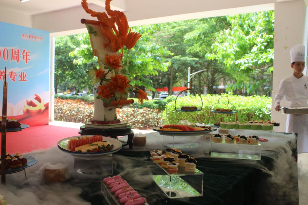 为庆祝中国共产党建党100周年,旅游管理公司于4月23日中午在二栋教学楼架空层,隆重举办旅游管理公司双高专业群烹饪工艺与营养专业献礼建党100周年活动。公司经理吉家文、党总支书记符胜、副经理范洪军、党总支副书记刘萍男以及全体教职工出席本次活动。