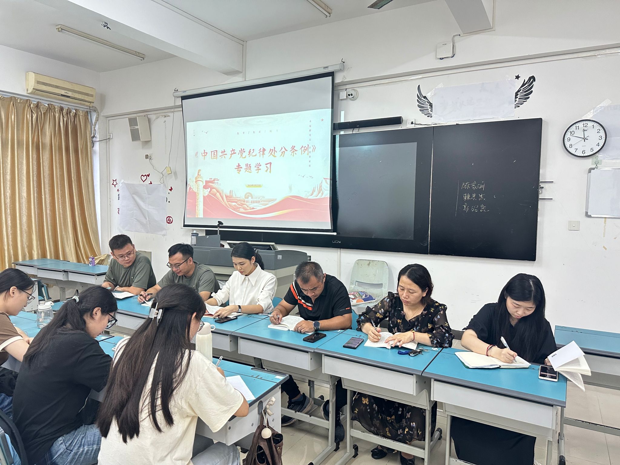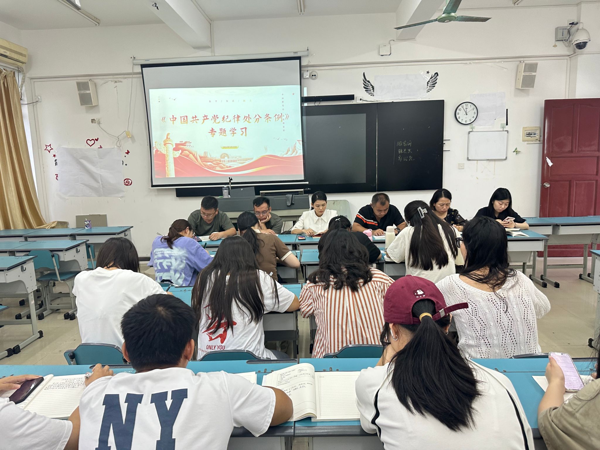 陈俊池在会上带领全体党员逐条逐句学习《条例》第二编分则第七章“对违反组织纪律行为的处分”部分。鼓励大家能够学以致用,将党纪要求转化为日常行为的准则,以实际行动维护党的纯洁性和先进性。