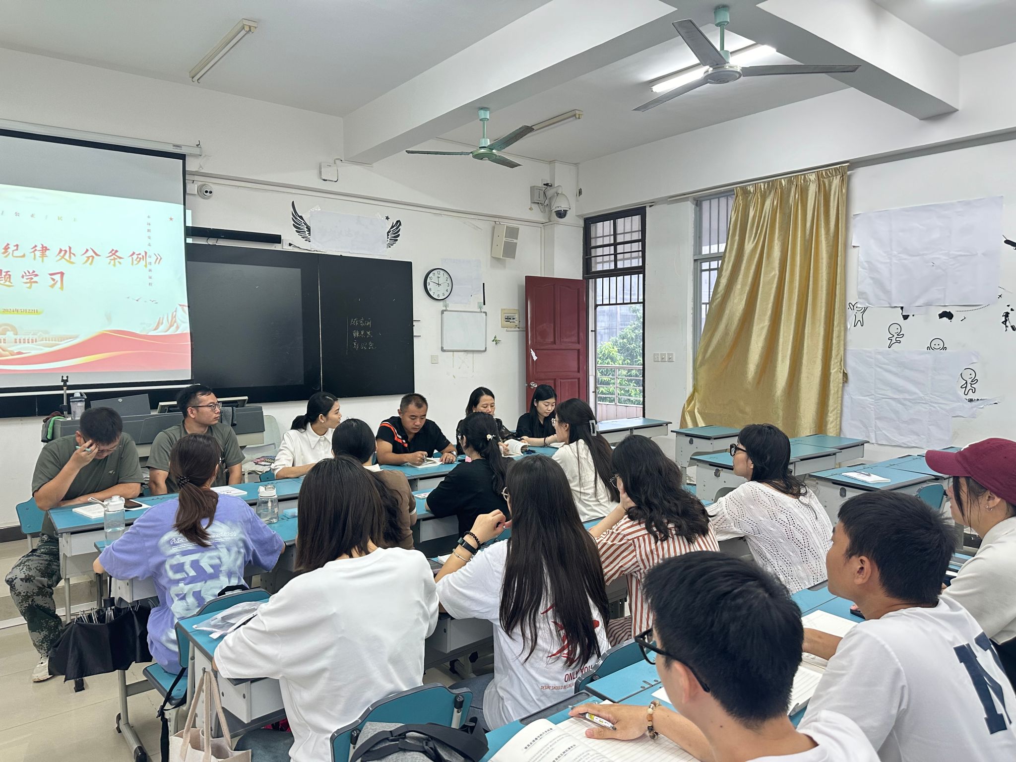 为进一步增强党员的纪律意识,筑牢底线思维,taptap点点员工党支部在5月22日上午于2-504召开《中国共产党纪律处分条例》专题学习会,党总支副书记刘萍男、全体辅导员、员工党员参会,辅导员陈俊池领学。