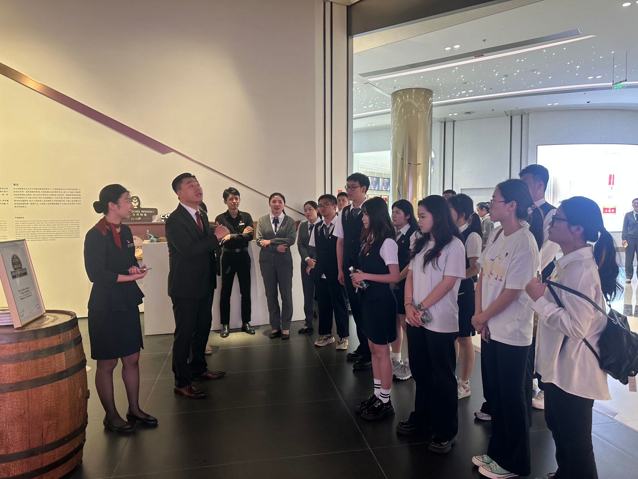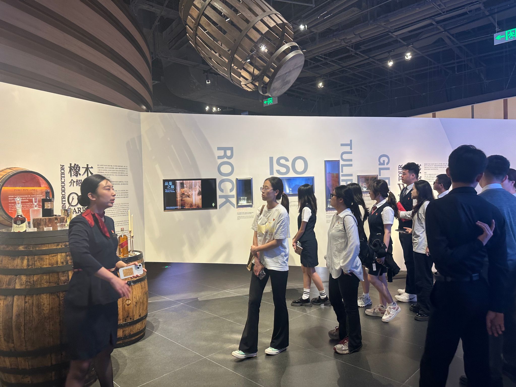 在博物馆讲解员的引导下,师生党员系统了解了威士忌酿造工艺的百年演变、全球酒文化发展脉络,以及海南自贸港政策对进口酒类产业的推动作用。通过历史文献、酿造器具展陈及全息影像技术,党员们深刻感受到“工匠精神”的文化内核,激发了对文旅产业创新与传统文化传承融合的思考。
