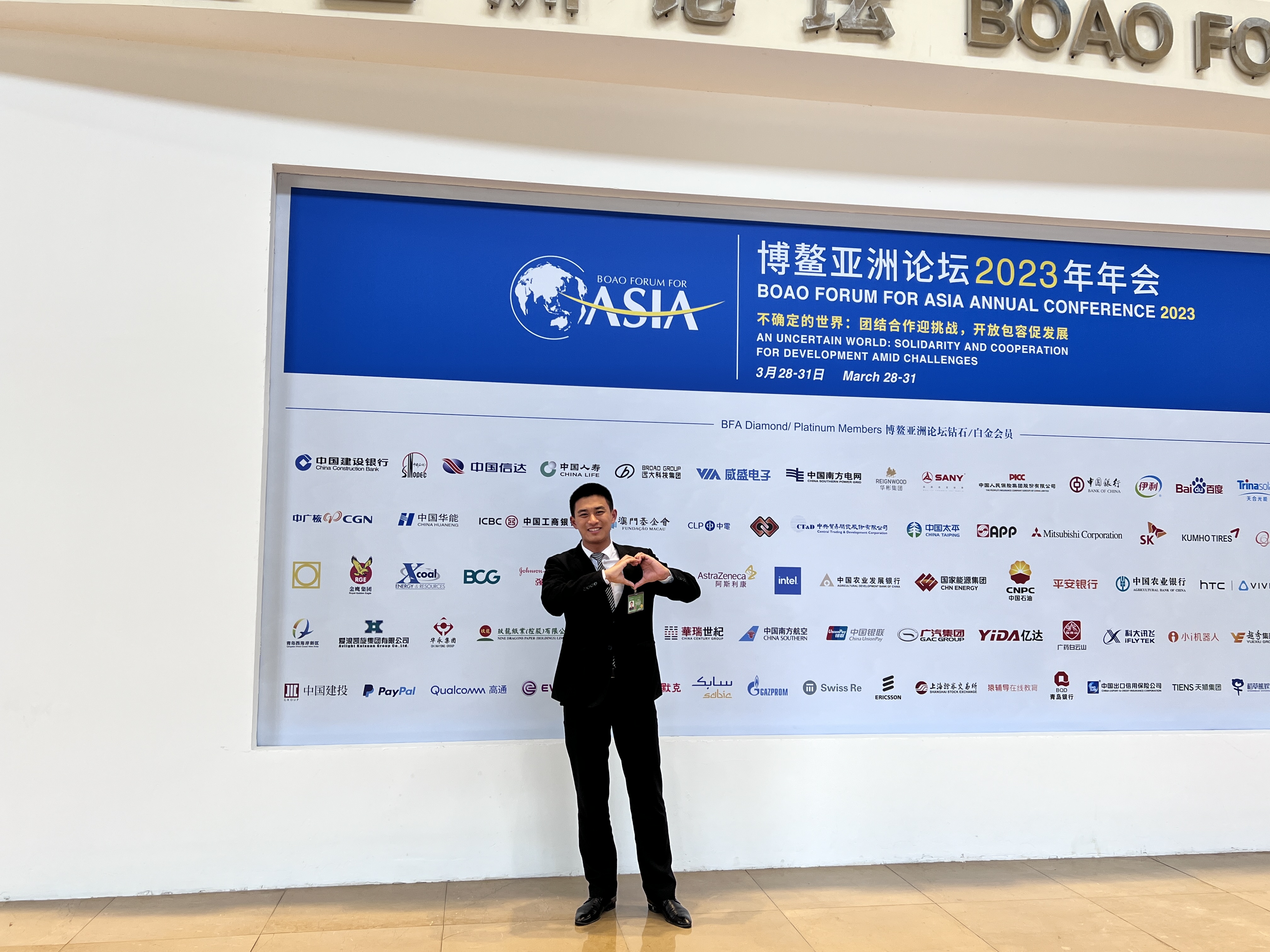 来自21级旅游管理本科2班的何星是第二次来到年会现场。谈到本次年会最令他难忘的瞬间,他说道,“去年在论坛年会外围开展志愿服务,没能够亲眼见证年会开幕盛况,令人颇感遗憾。今年作为新闻中心的安保志愿者,我成为了为数不多能够目睹年会开幕风采的志愿者,这样的经历令人终生难忘!”