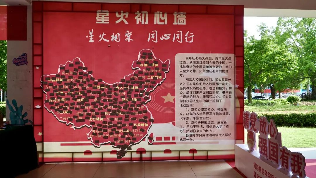 百年初心历久弥坚,青年星火必燎原。500余名新生怀着最真诚炽热的心愿,理想和抱负,用扣子贴纸在初心墙上贴上入学目标。正初心,系扣子。启程新生,畅想未来!