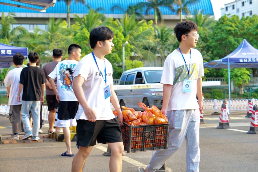 校园闭环管理期间,公司在做好疫情防控的同时,时刻关注员工的身心健康。4月6日,员工代表座谈会上同学们反馈的水果贵、难买的问题,引起公司高度重视。4月7日晚,在公司学工部符绩彰部长的大力支持下,公司迅速行动,购置1056份爱心水果。在樊靖老师和公司志愿者的带领下,迅速将水果发放到员工手中。