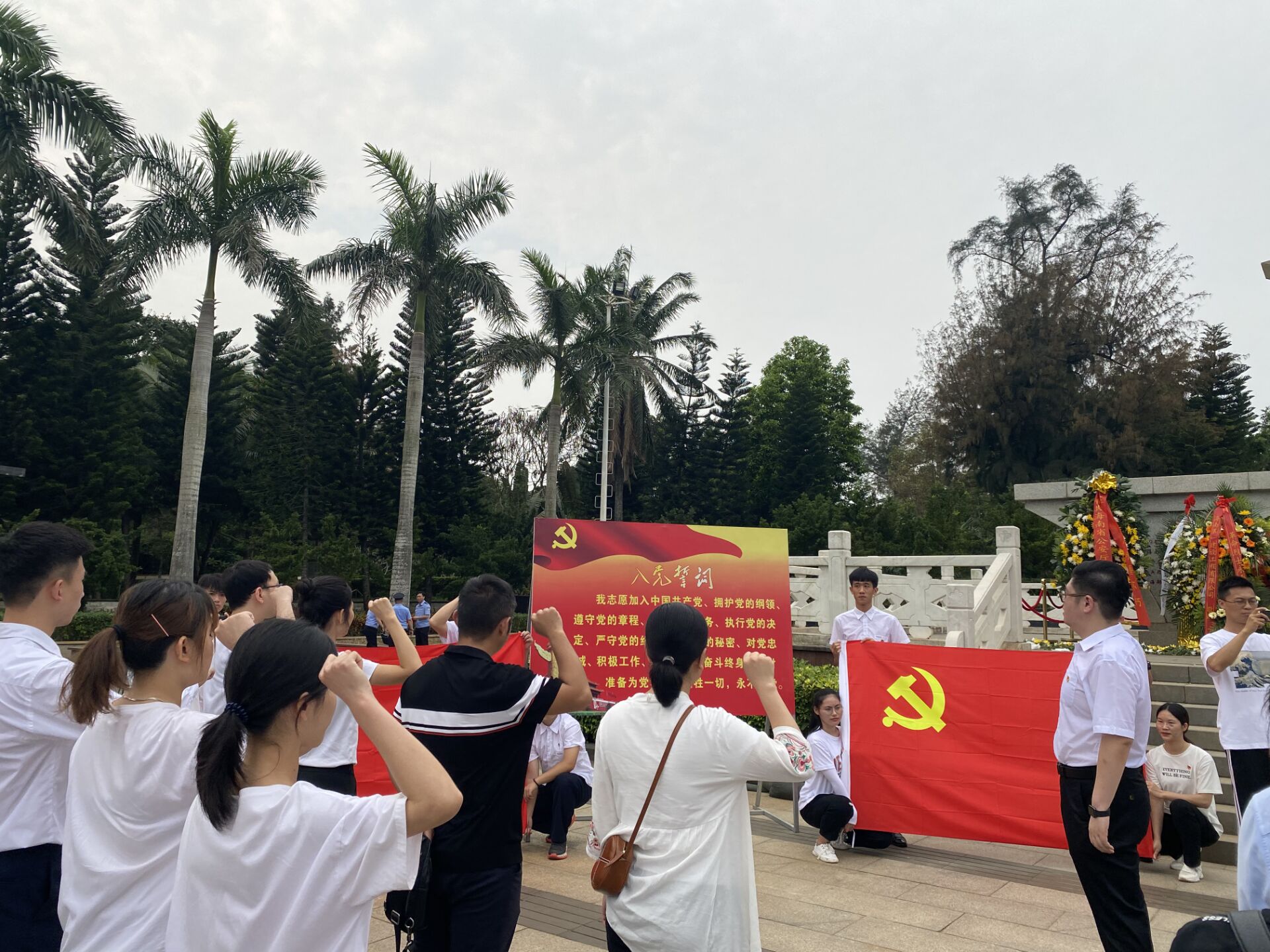 旅游管理公司副书记刘萍男、学工办辅导员符珍、陈俊池、张强以及二十位员工党员代表、团员代表参加公祭活动。