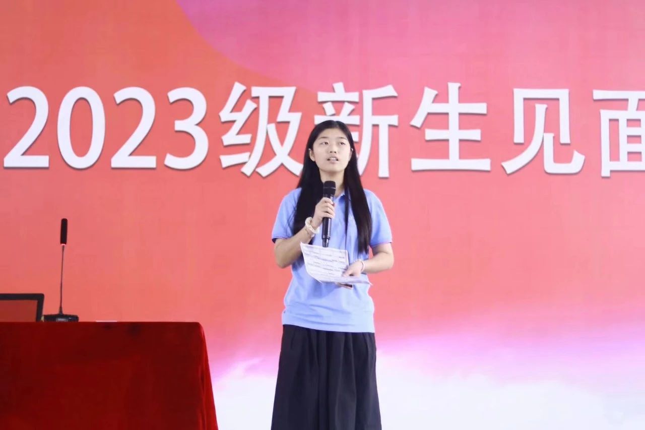 吴淑琪老师代表教师,寄语每位新同学,希望每一位新生能带上“理想与目标”、“付出与坚持"、“年轻健康的体魄”、“懂得感恩与爱的心”这四个装备,去迎接新学期的到来。