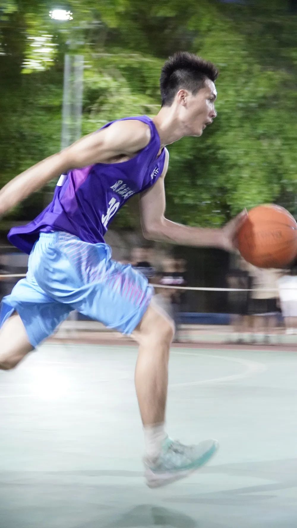运动员们争先恐后的想夺下首球,一刹那间场下响起铺天盖地的加油声和欢呼声,闪电的速度,激烈的抢夺,防守攻击不断变换,默契的配合,精准的抢断,紧扣球面运球帷幄。迅捷的突破,连贯的动作,跳跃投篮一气呵成!