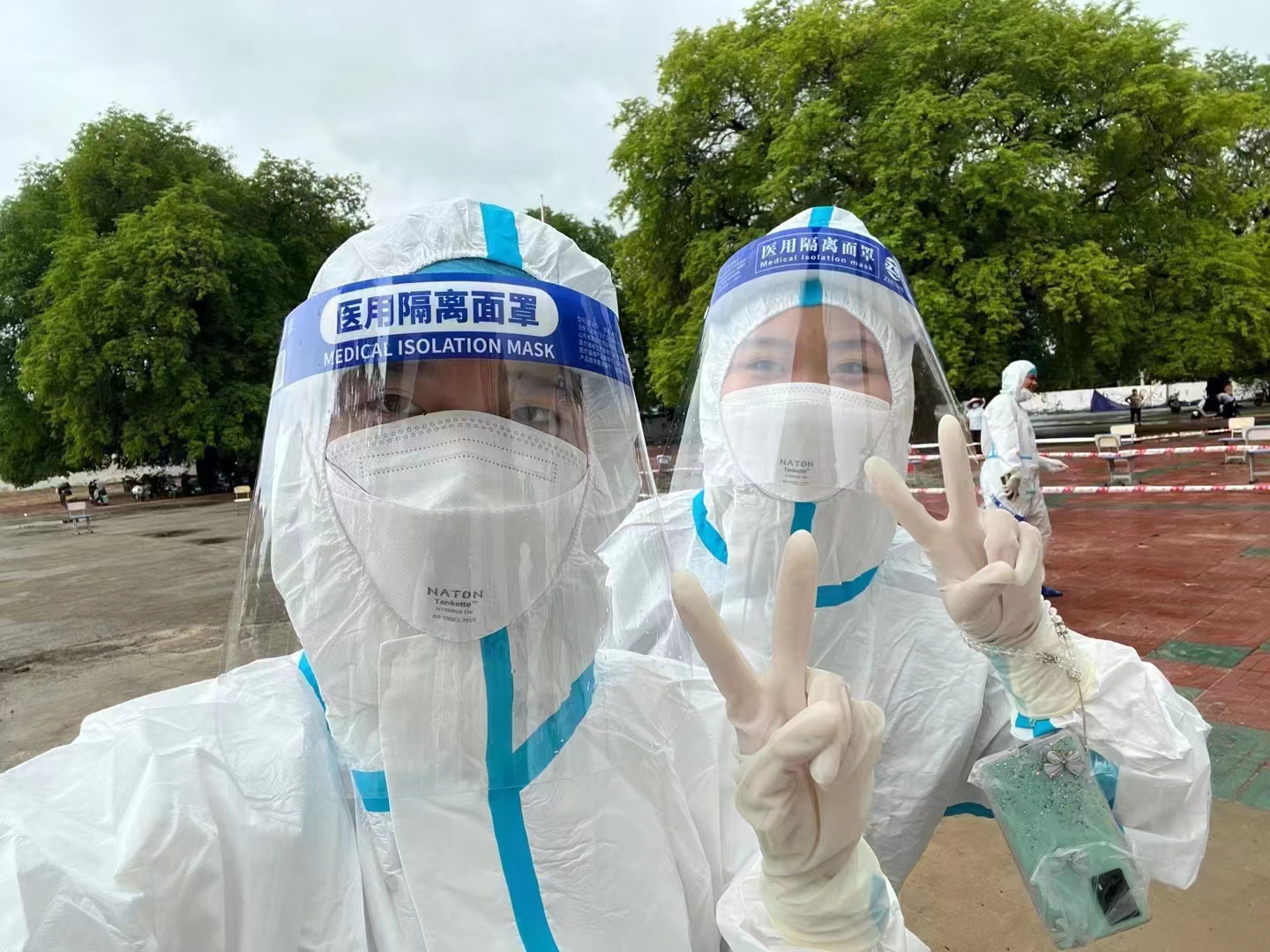 8月5号的凌晨,他乘车前往20多公里外的三亚市实验小学区域展开志愿者服务,负责信息采集和核酸采样工作。第一次穿上防护服时,他说:“感觉一股热气从下往上冲,最后热气将全身包裹的时候,我才明白了一线工作者是多么的不容易。”8月10日晚十点,刚吃完晚饭的他,在向辅导员报备了近期行程后,顶着夜色再一次踏上了上门核酸采样的路。