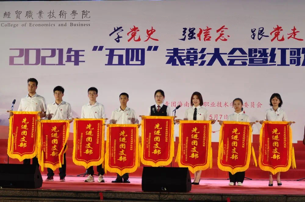 “五四”表彰大会对公司黄来娣等43位优秀共青团员,梁桂等33位优秀共青团干部,19级旅游管理3班团支部等4个先进团支部、柴国鹏“经贸自强之星”、张强“优秀共青团干部(教师)、旅游管理公司“五四红旗团总支””予以表彰。
