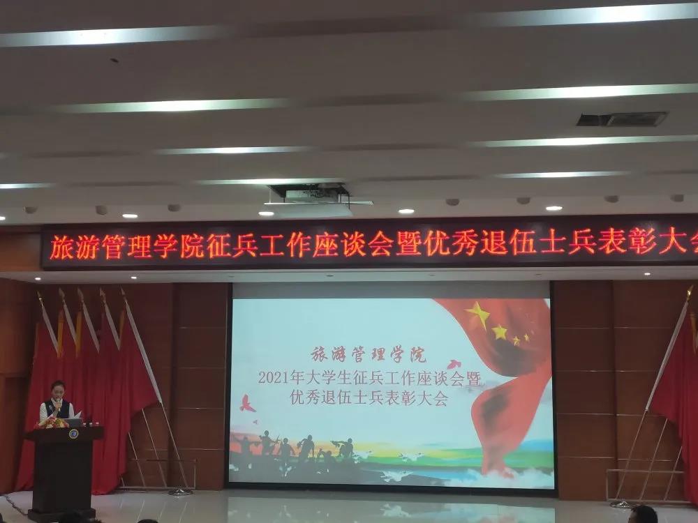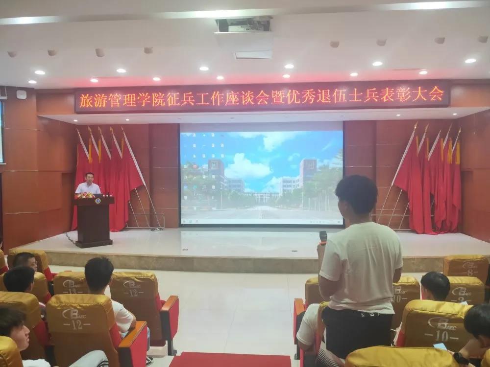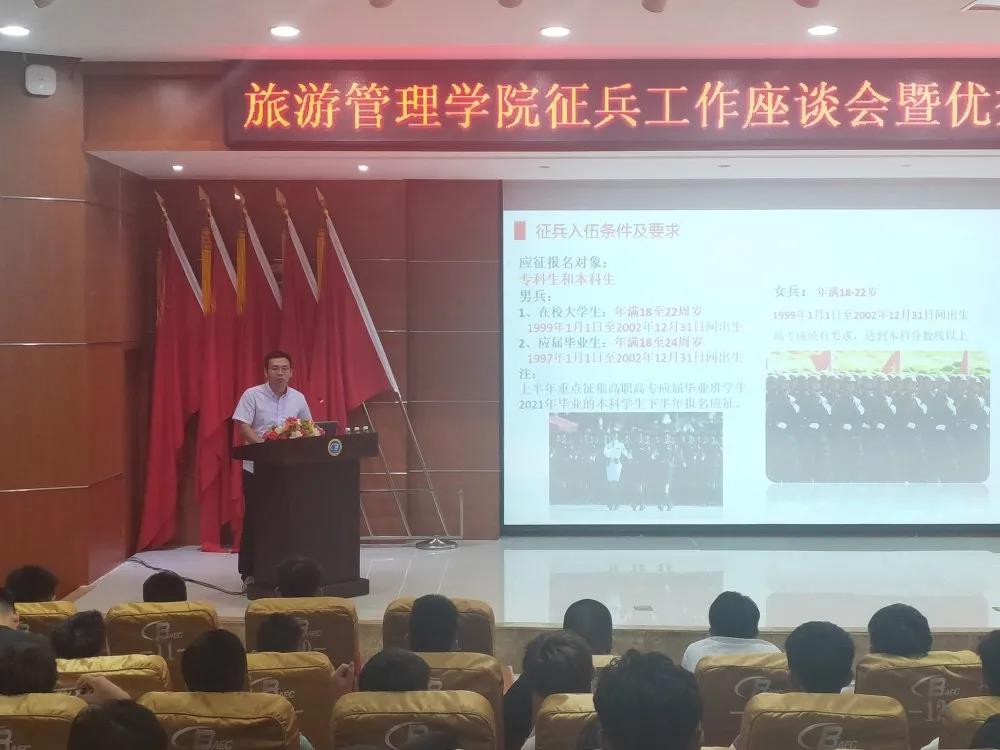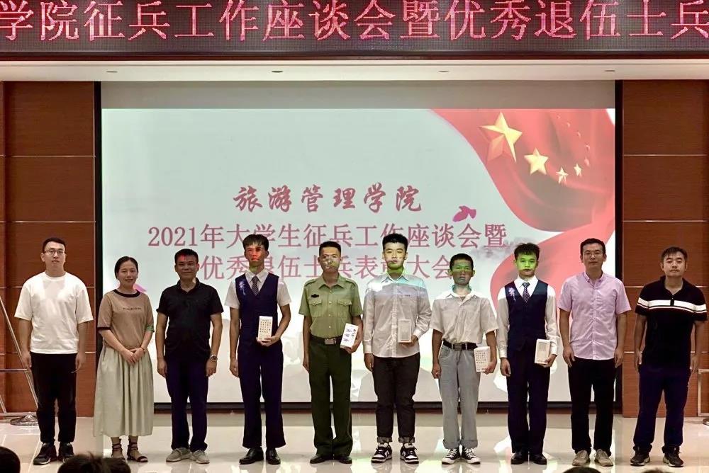 为积极响应国家征兵的号召,巩固国防建设,圆满完成2021年征兵工作,公司于2021年6月8日在经贸宾馆学术交流中心召开了老员工征兵工作座谈会。出席本次会议有国际旅游公司党总支符胜书记,辅导员符珍、陈俊池、樊靖、张强老师,退伍军人代表郑馨瑞、邱宇、黄位重、赵家珩、邓美鑫五位同学,2019级全体男同学及2020级员工代表。会议由秘书处程焕杰主持。