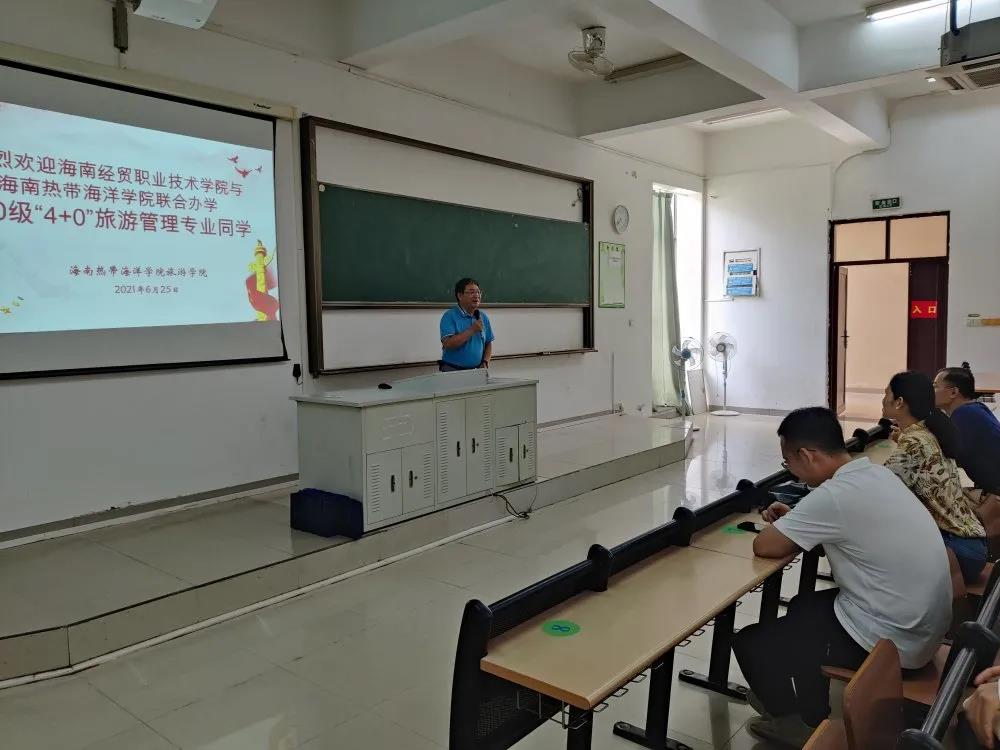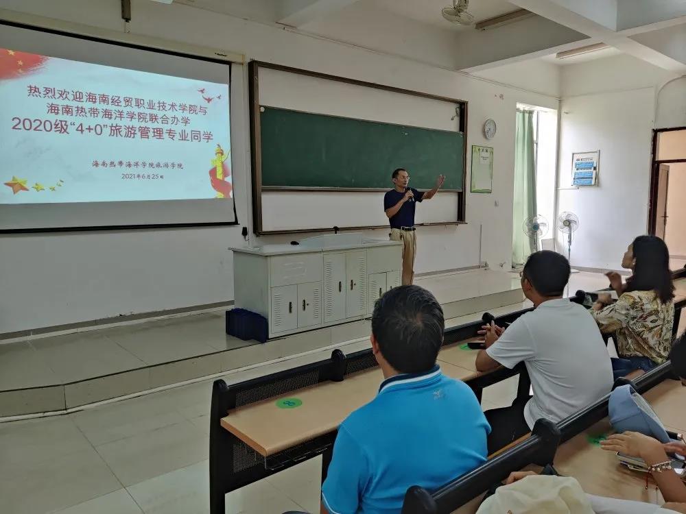 公司与热带海洋公司联合办学培养的2020级“4+0”旅游管理本科专业员工已在海经贸学习和生活将满一个学年。为增强员工对海南热带海洋公司的了解和母校情感。应广老员工的要求,结合公司产品工作的需要,2021年6月25日,国际旅游公司党总支副书记刘萍男,辅导员樊靖、张强带队2020级“4+0”旅游管理本科专业员工赴海南热带海洋公司交流学习。