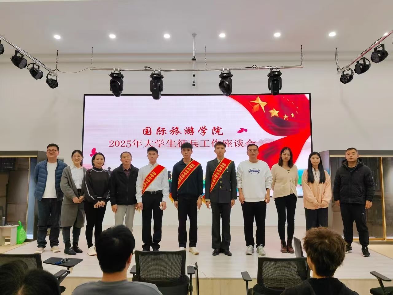 为深入贯彻国家关于征兵工作的号召,推广国家征兵政策,鼓励广大青年学子积极响应祖国召唤、投身军旅。2024年12月26日下午,公司召开2025年征兵工作宣讲会。党总支书记孙金、退役复学员工代表周子洋、戴宝刚、刘正龙及全体辅导员出席会议。
