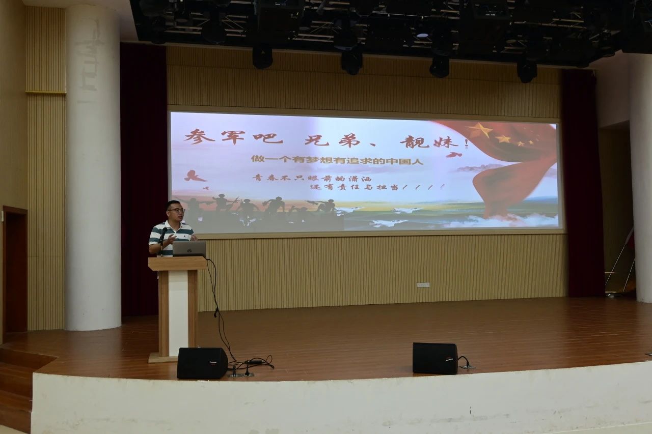 会议开始,樊靖老师深入解读了征兵入伍的具体要求、报名流程、个人成长进步空间等内容,并详细介绍了入伍、提升学历、退役安置、就业等方面的优抚政策。动员优秀的适龄同学接受祖国挑选,投身国防建设。并强调携笔从戎必是人生的宝贵经历,是磨炼意志的大好平台,不仅有利于个人未来发展,更能增强家人荣誉感。