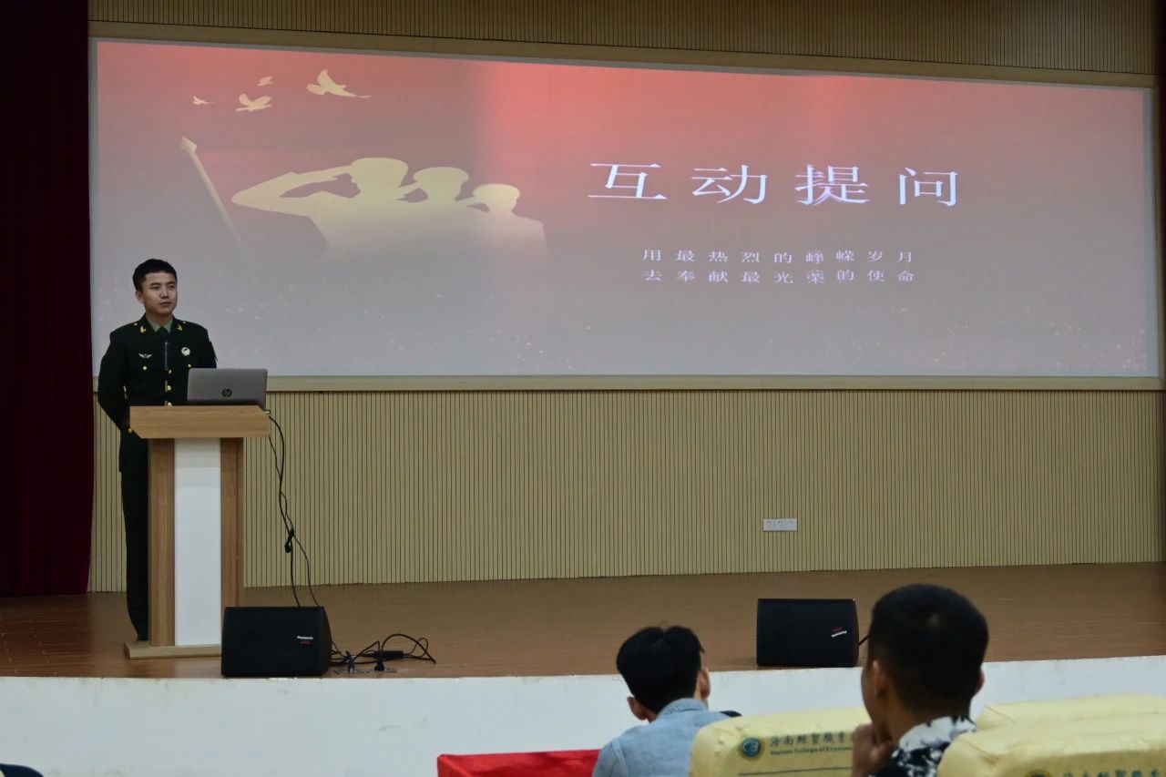 三位退伍军人分别分享了自己的入伍经历,齐正文结合自身,从实际出发,鼓励同学们踊跃报名参军入伍:“当兵都需要有坚定的信念,一要不怕苦、二不怕死,入伍后一定要在保家卫国最前线展现国旅学子的精神风貌,不负青春、不负母校、不负党和国家的殷殷期许,为新时代国防事业贡献自己的青春力量”。