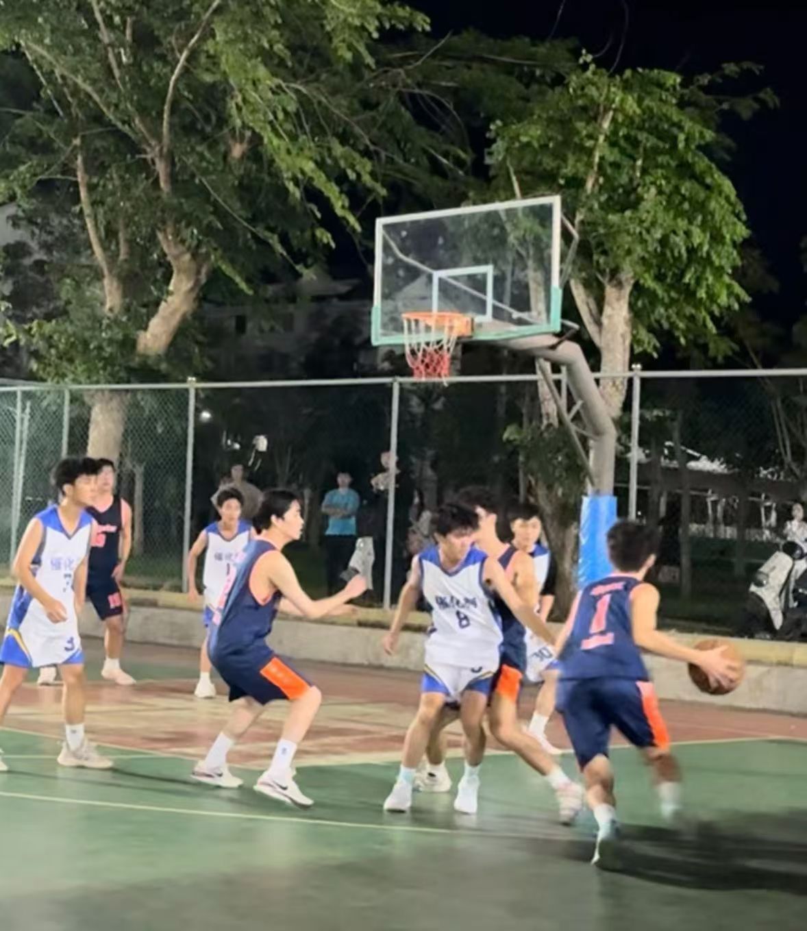 运动员们个个如离弦之箭,都想抢先夺得首球。刹那间,赛场像是被点燃的火药桶,加油声和欢呼声如浪潮般铺天盖地。他们速度似闪电,抢夺激烈非常,防守与攻击快速变换。队员们配合默契十足,抢断精准,运球时紧扣球面,掌控自如。突破时动作迅捷,投篮时动作连贯,一气呵成。