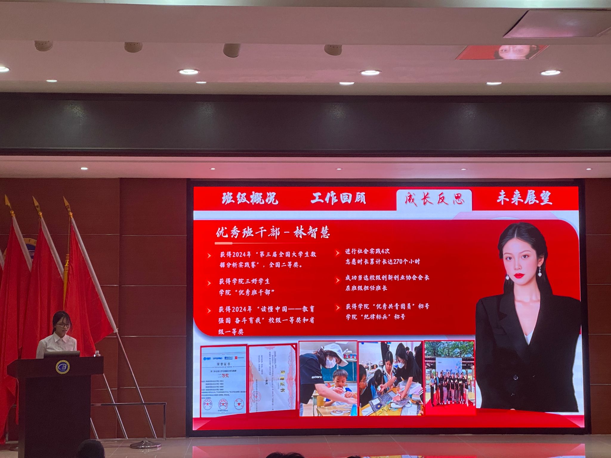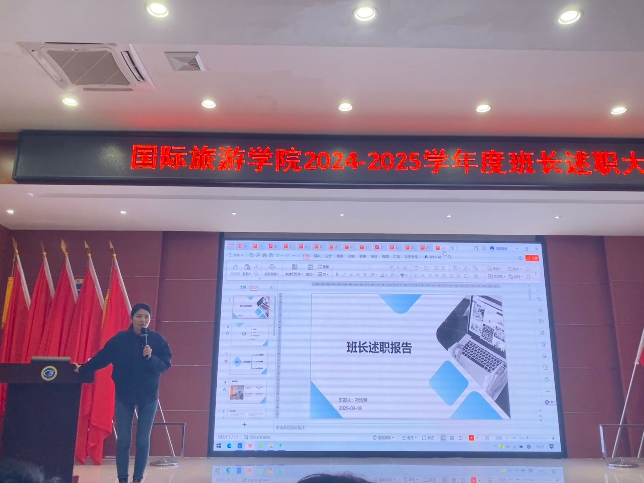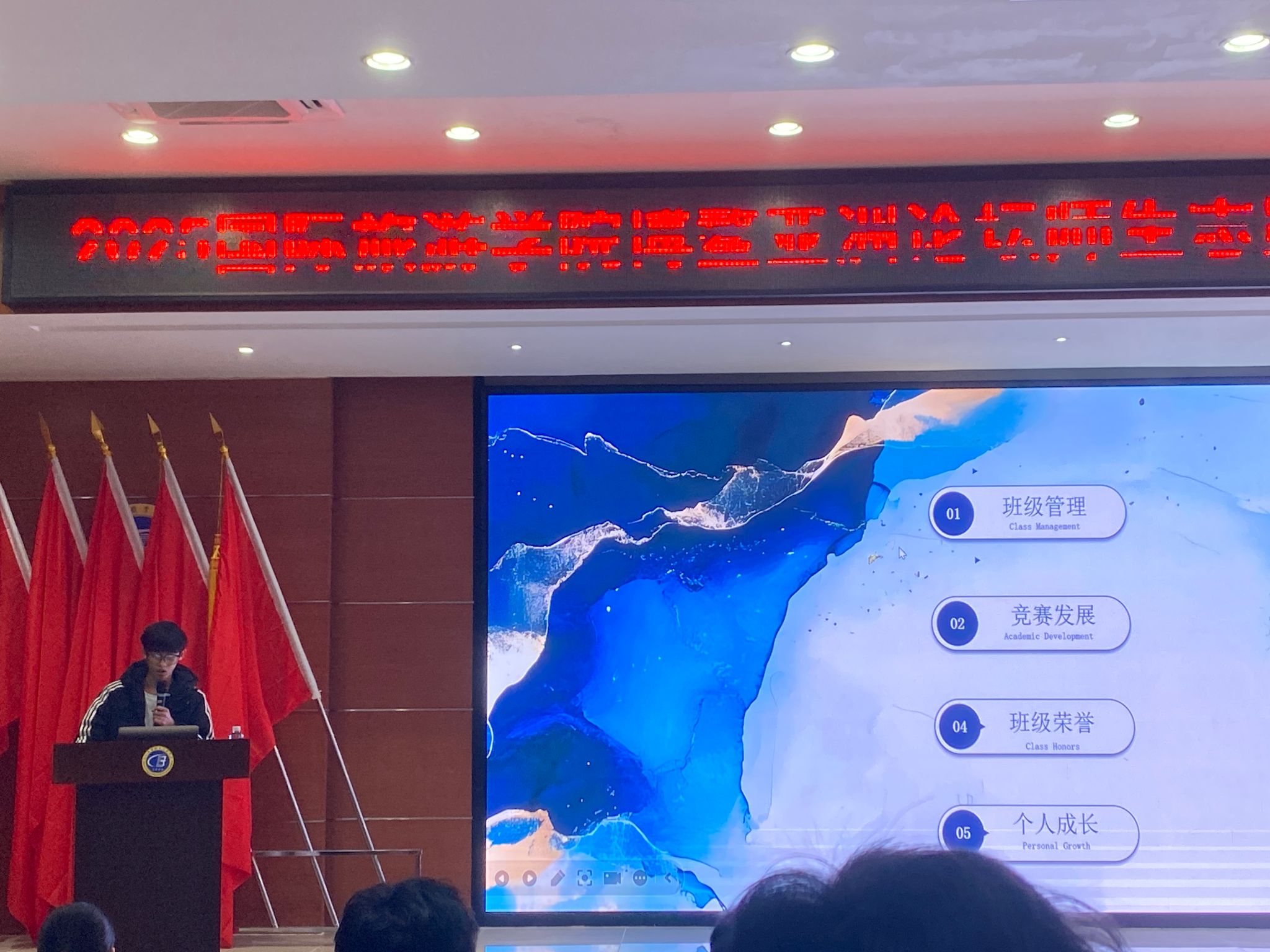 各班代表围绕班级基本情况、学风建设、日常管理、文体活动、社会实践与志愿服务等方面进行详细汇报。述职过程中,各班长充分展示班级的独特风采和工作亮点,通过深入交流与分享,相互学习班级管理经验,提出切实可行的改进措施与未来规划。