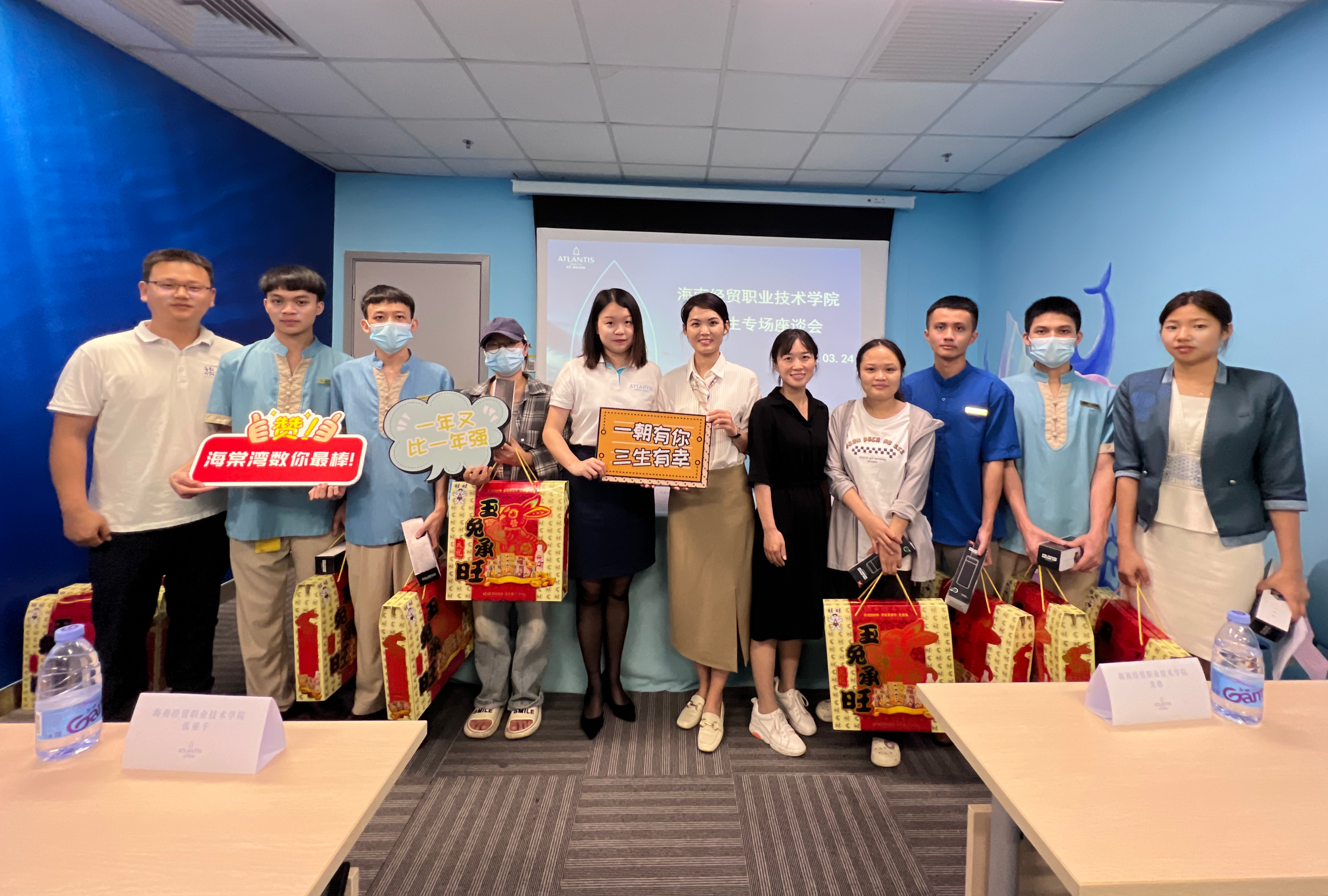 (与三亚亚特兰蒂斯酒店企业代表和实习生合影)