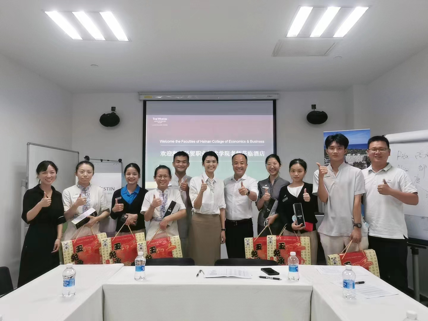 (与三亚海棠湾威斯汀民生酒店企业代表和实习生合影)