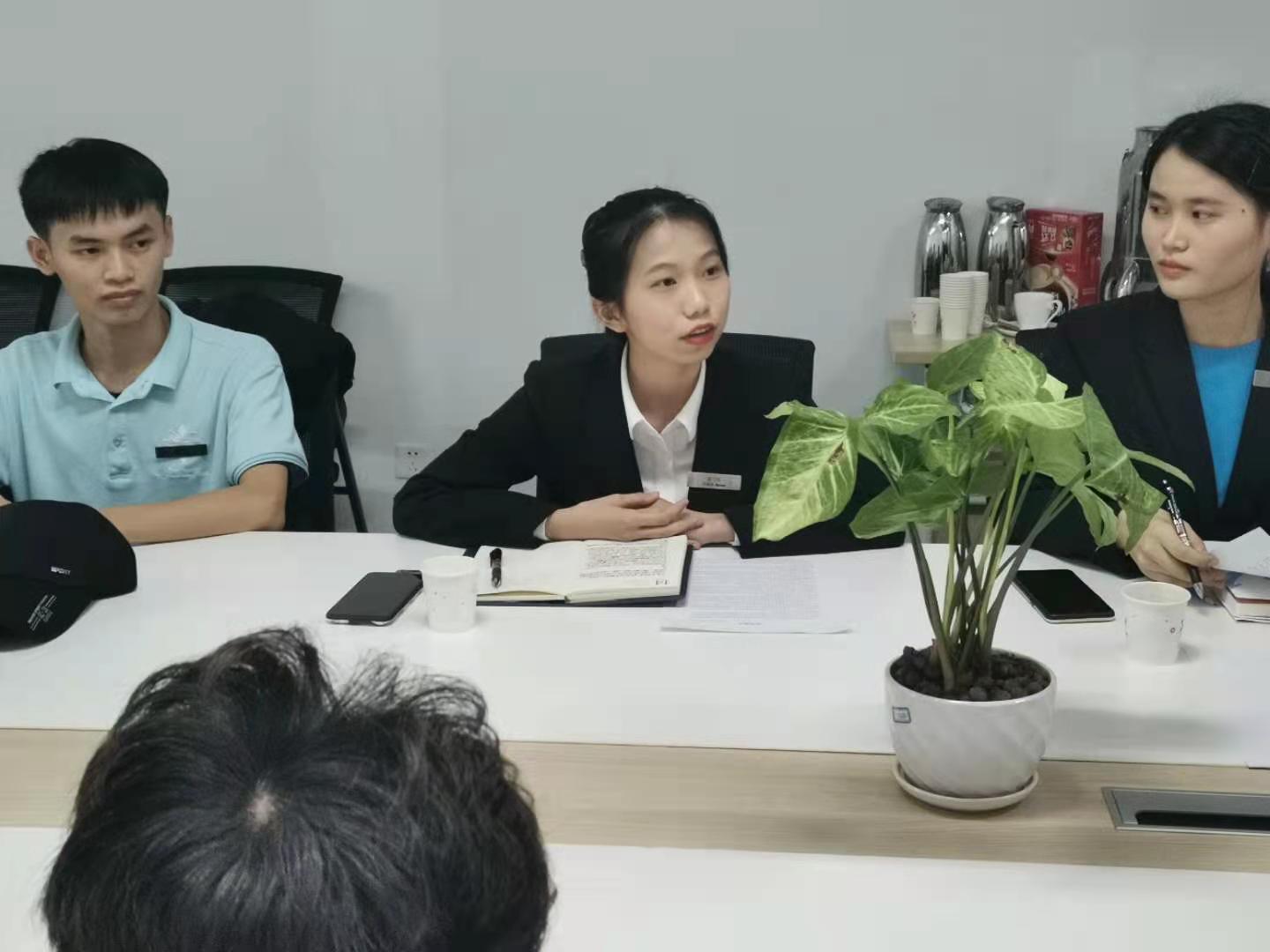 实习生们依次总结汇报结束后,公司陈晓鹏副经理以及酒店方代表针对实习生们提出的问题进行了一一的解答并当场给予了回复和解决。(见图四)