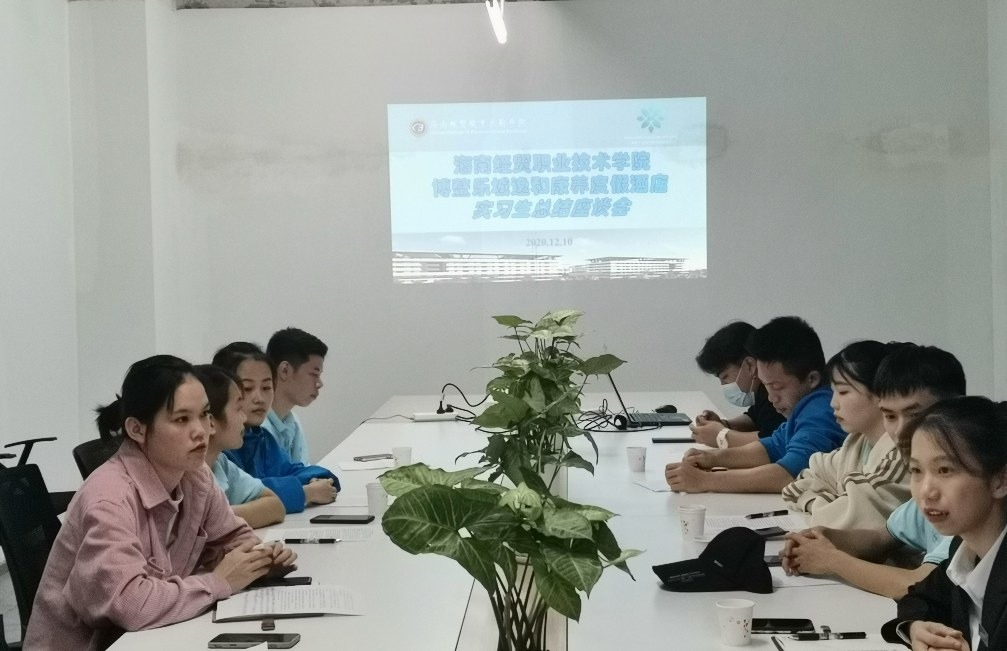 (旅游管理公司卢耿华老师、就业干事助理吴曼瑶报道)2020年12月10日下午三点,陈晓鹏副经理前往博鳌乐城逸和康养度假酒店,应邀参加在博鳌乐城逸和康养度假酒店5号楼-2F会议室召开的实习生总结座谈会。旅游管理公司陈晓鹏副经理、一龄集团人力资源总监武雅明、酒店人资行政处长吴海强、酒店人事经理李青慧、酒店培训经理李承育以及15名2020届专科、本科毕业实习生出席本次座谈会。(见图一)