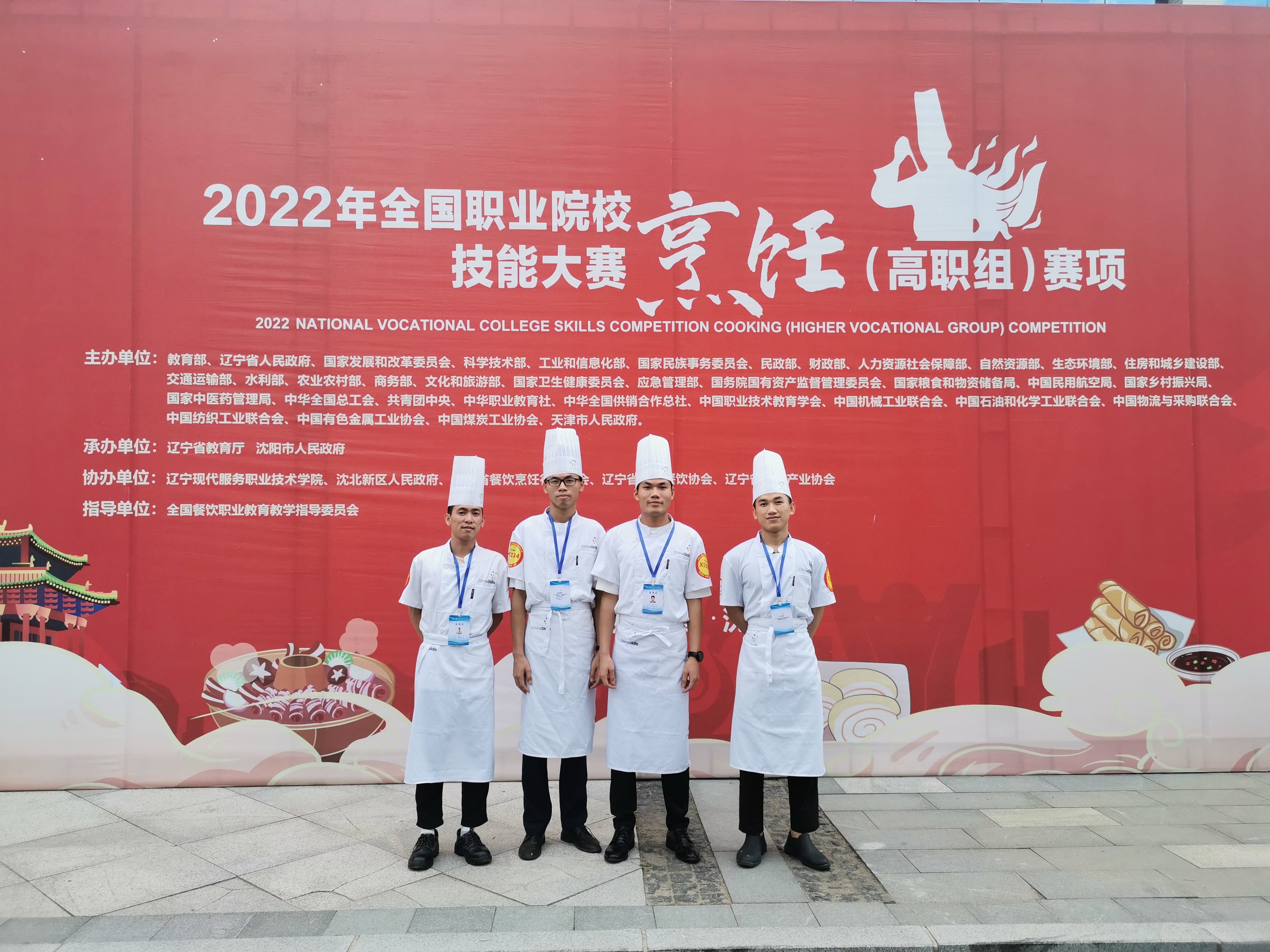 2022年8月21-23日,2022年全国职业院校技能大赛高职组“烹饪”赛项在沈阳举办。由taptap点点烹饪工艺与营养专业的员工周小龙、张国旺、潘琨、梁明组成的海南省代表队荣获团体三等奖。