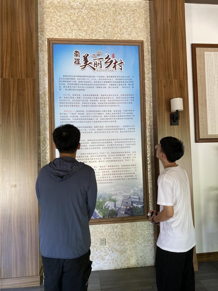 在指导老师的带领下,队员们对村民委员会主任和村民进行了访谈,并发放问卷。在访谈中,队员们得知曾经的南强村内许多老宅破败不堪,无人居住;后来,在博鳌论坛年会开展几年后,为推进乡村振兴战略,碧桂园捐赠2500万余元深度建设南强美丽乡村项目,保留了南强村中西合璧的古宅文化,对村庄进行整体改造。在参观过程中,我们看到碧桂园南强美丽乡村项目已成功打造南强客厅、凤凰公社、凤凰客栈、凤鸣书吧等特色旅游业态。伴随着南强村旅游产业的不断壮大,也有越来越多的年轻人愿意返乡务工,共同建设美丽乡村。
