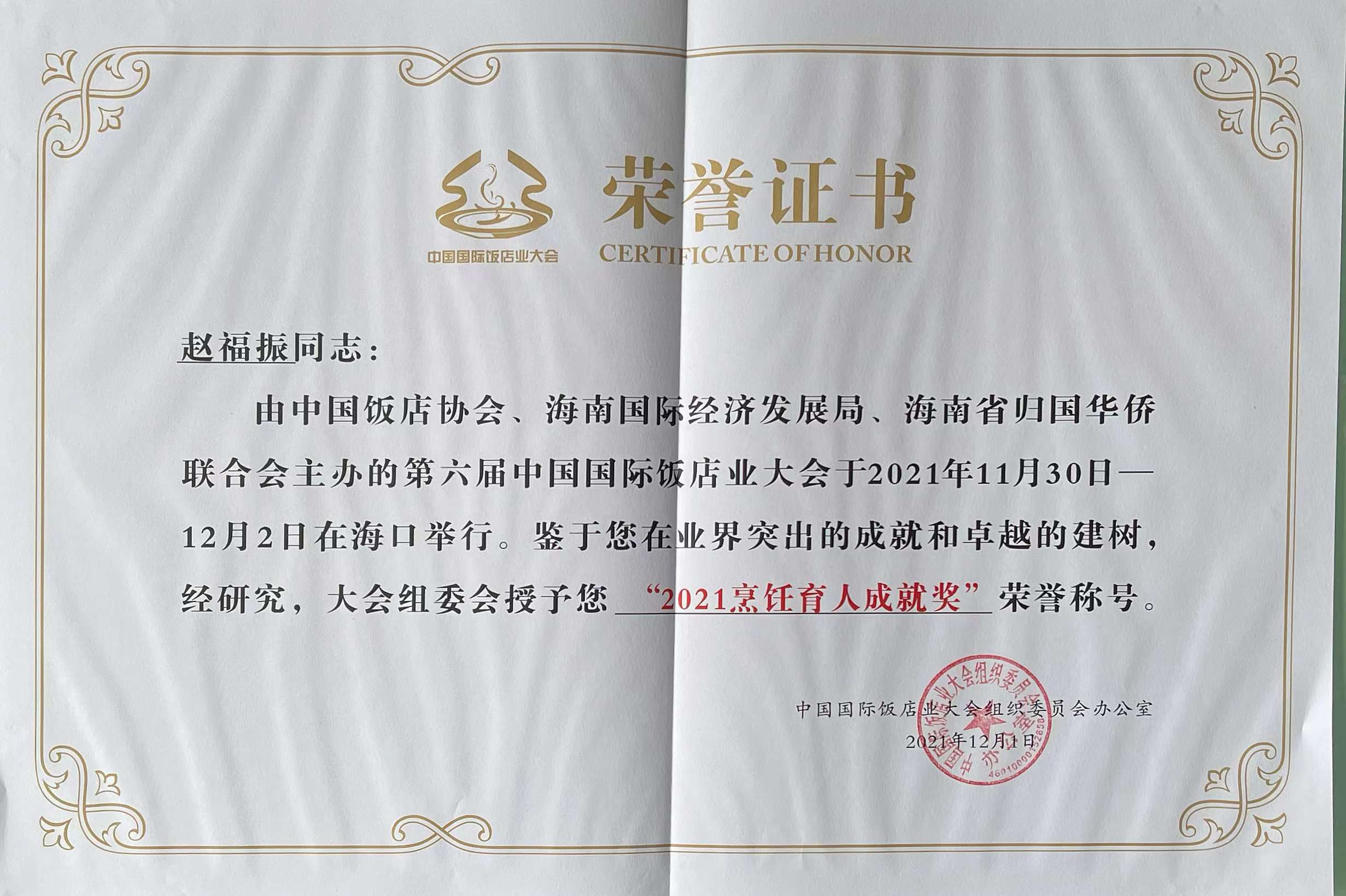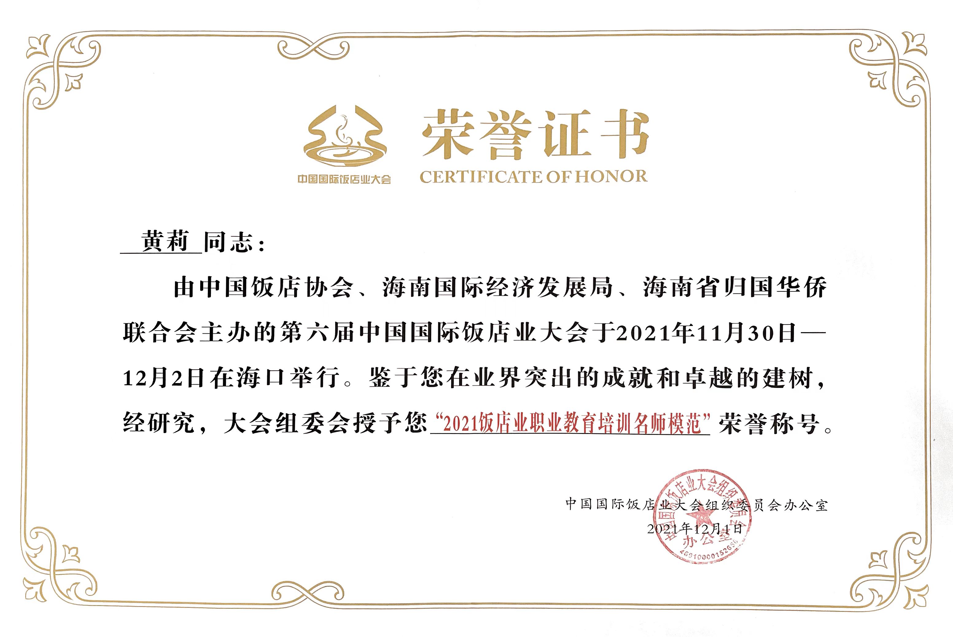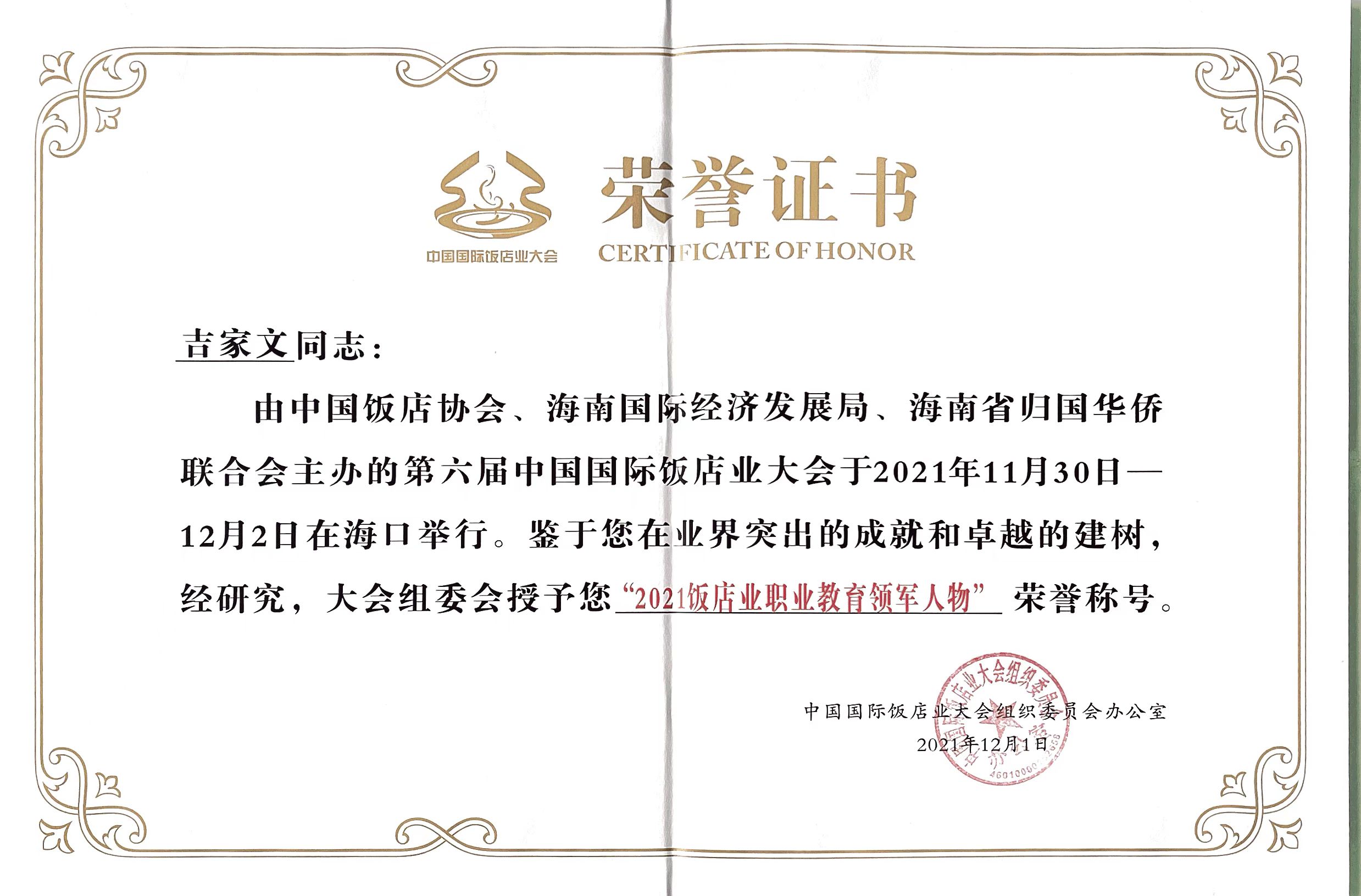 本次大会对2021年度行业表现优秀的酒店品牌、院校、职业经理人、教师进行了表彰。公司荣获“2021年度饭店业优秀人才培养院校”荣誉称号。taptap点点经理吉家文荣获“2021饭店业职业教育领军人物”荣誉称号。taptap点点烹饪专业带头人赵福振荣获“2021烹饪育人成就奖” 荣誉称号。taptap点点酒店管理专业教研室主任黄莉荣获“2021饭店业职业教育培训名师模范” 荣誉称号。