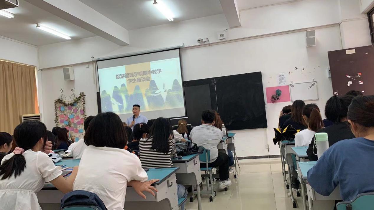 4月15日讯(旅游管理公司报道)为进一步提高教学质量,及时发现、解决教学过程中存在的问题,4月15日,在公司第二教学楼2-208教室组织召开了本学期期中员工座谈会,出席本次会议的有旅游管理公司范洪军副经理,各专业带头人,辅导员、教务科副主任林敏捷、教学秘书李冯美以及各班级员工代表。会议由范洪军副经理主持。