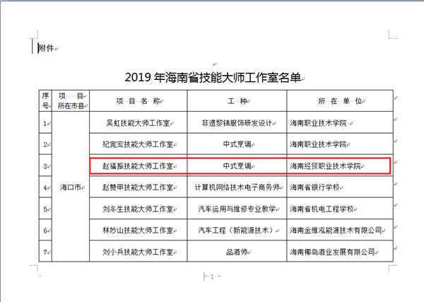 近日,海南省人力资源和社会保障厅公布了2019年省级技能大师工作室名单,taptap点点“赵福振技能大师工作室”成功入选,是公司首个获批的省级技能大师工作室,标志着海经贸高素质技能人才培养又迈上了一个新阶段。