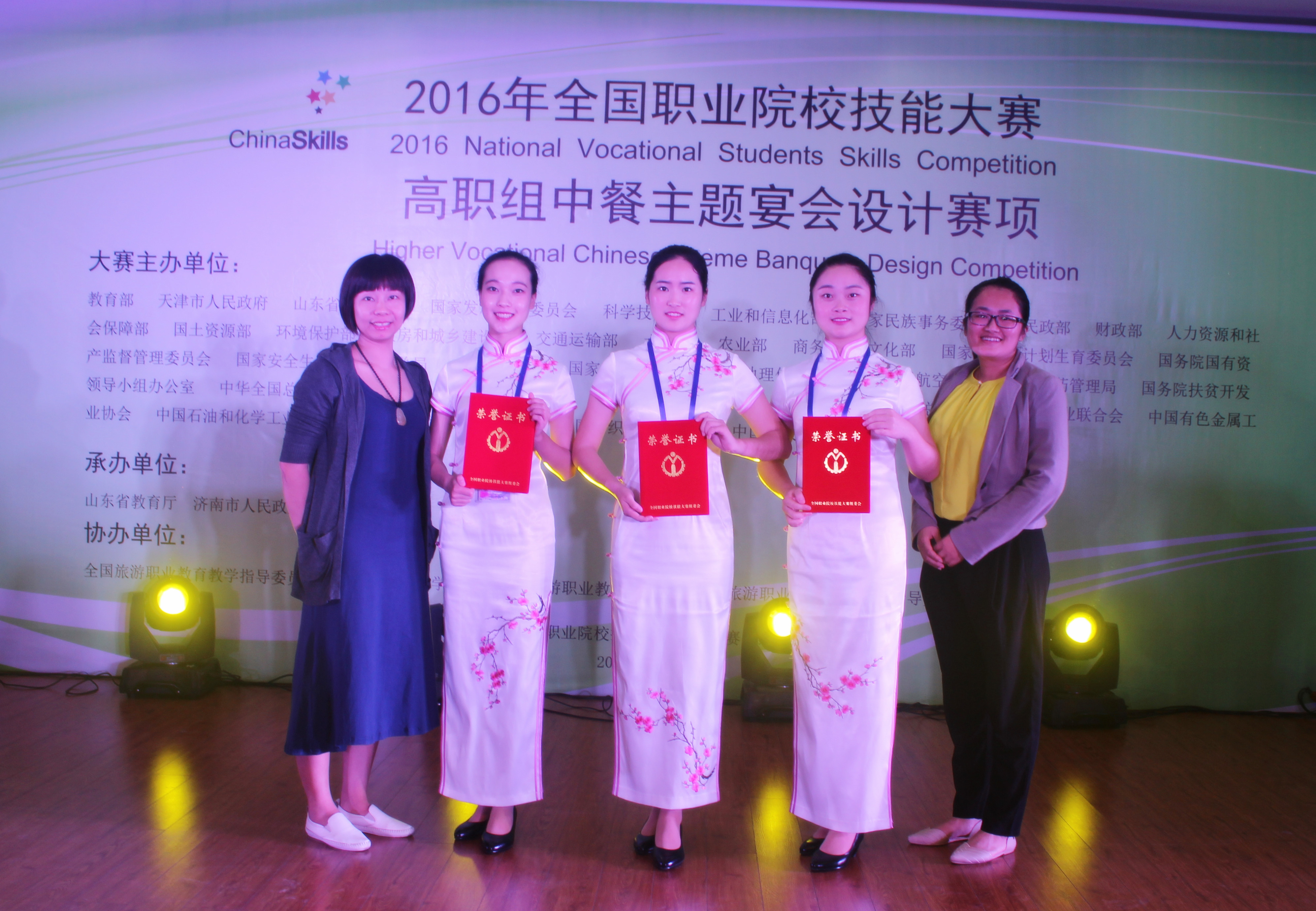 本校5月31日讯(旅游管理公司报道)5月29日,2016年全国职业院校技能大赛高职组“中餐主题设计” 赛项在山东旅游职业公司圆满落幕。经过激烈角逐,公司酒店管理专业2014级员工刘娇娇、段凌怡、程凤组成的代表队荣获团队三等奖。