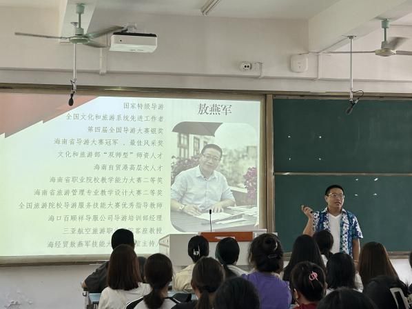 同时,为了让新同学对专业及行业有更深入、直观的把握,特邀国家特级导游熬燕军专家为员工们开展“劳模大讲堂”的活动,熬燕军老师从自身学习、工作经历出发,围绕“匠心铸就梦想,技能成就人生”的主题,通过生动活泼的课堂为新同学们呈现了旅游管理专业的职业发展路径,激励员工们向“成为光、散发光”的境界努力。