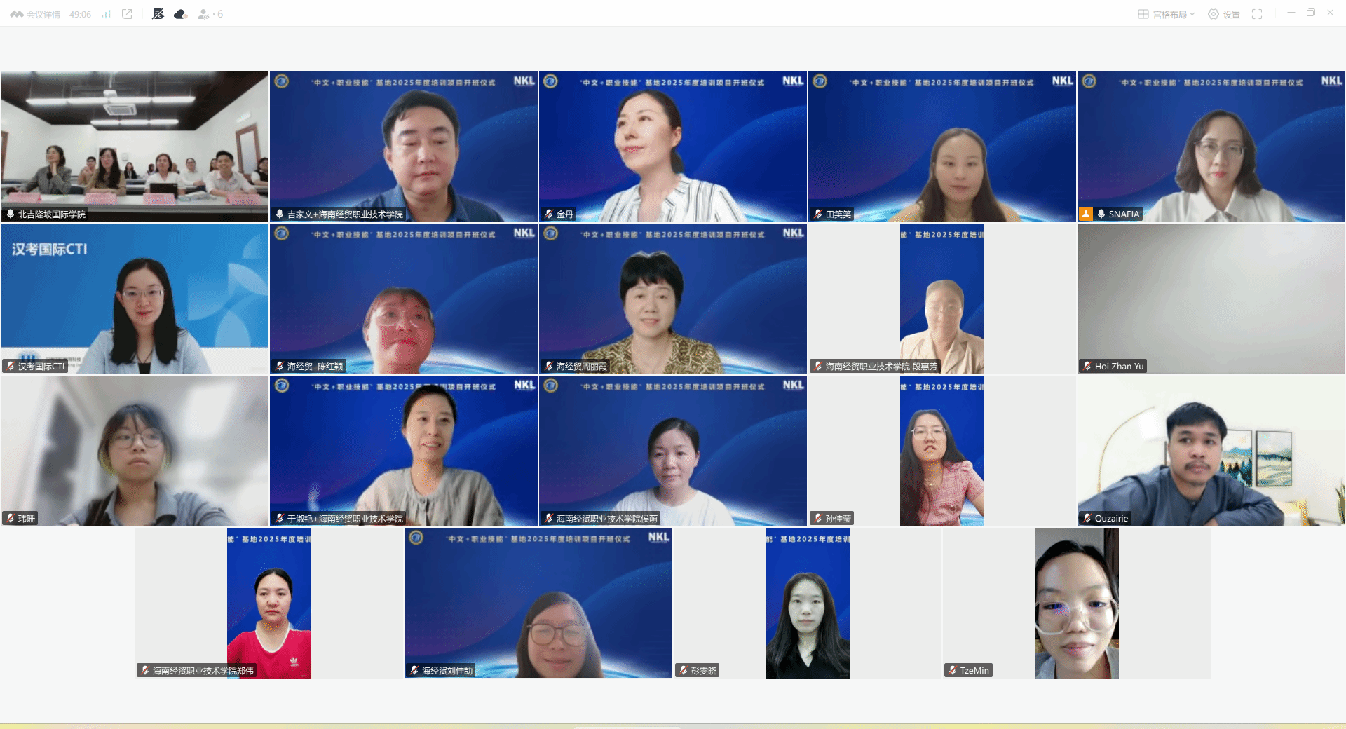 本次开班仪式由海经贸——马来西亚中文学习测试中心外派教师周敏主持。taptap点点经理吉家文、国际教育公司经理周丽霞等 14 位授课教师、北吉隆坡国际公司创始人兼董事长林小雄、执行董事长蔡湝仪等团队学员出席。汉考国际教育科技(北京)有限公司市场部主管马梦莹和中北非国际教育创新联盟办公室主任卓薇佳一起出席,共同见证中马教育合作新里程碑。