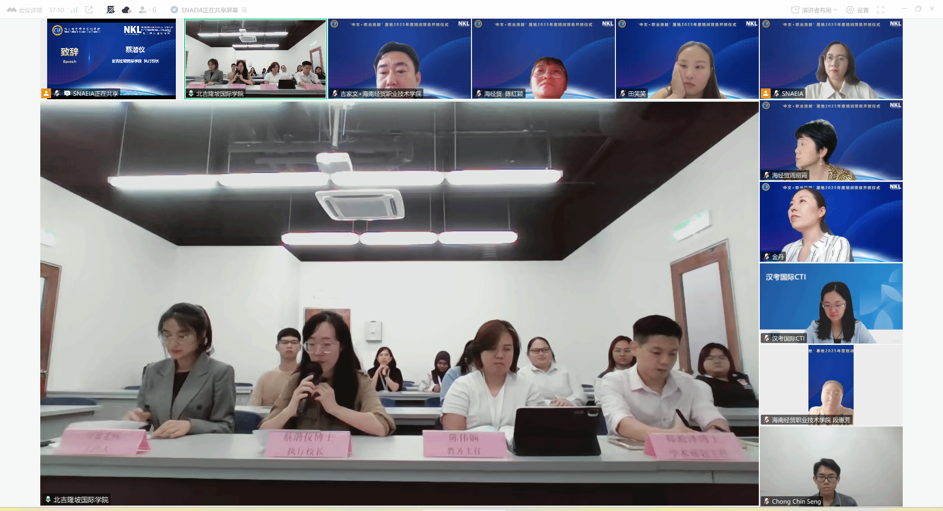 北吉隆坡国际公司蔡湝仪董事长表示,该项目是两校深化合作的起点,期待学员以“中马文化交流使者”身份,为两国教育及旅游产业协同发展注入动能。汉考国际代表马梦莹则结合 HSK 考试体系全球推广实践,强调语言能力在职业发展中的核心价值,鼓励学员通过系统学习提升跨文化竞争力。金丹副教授作为教师代表发言,表示全体教师将采用多样化教学方法为本次培训取得预期效果共同努力。