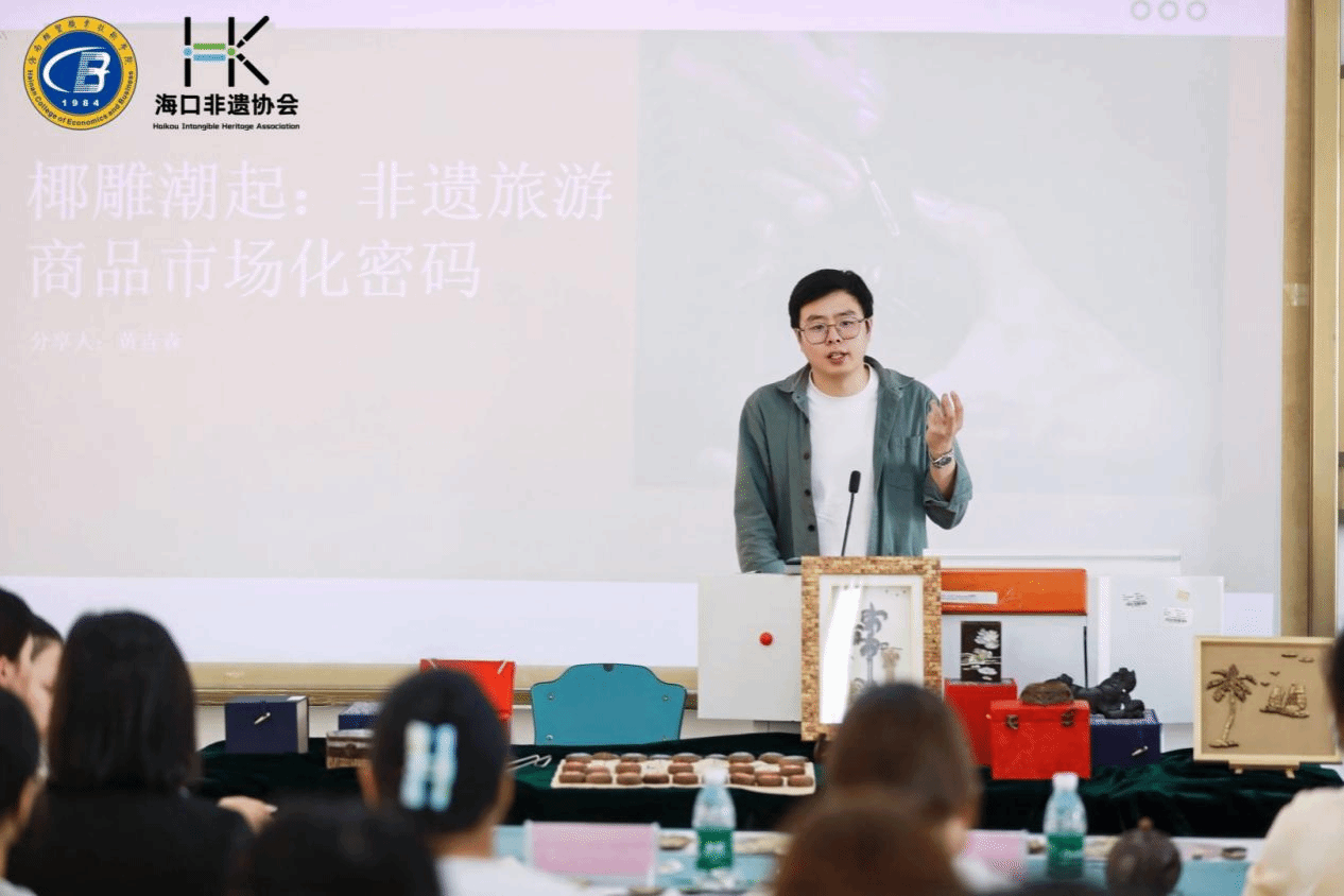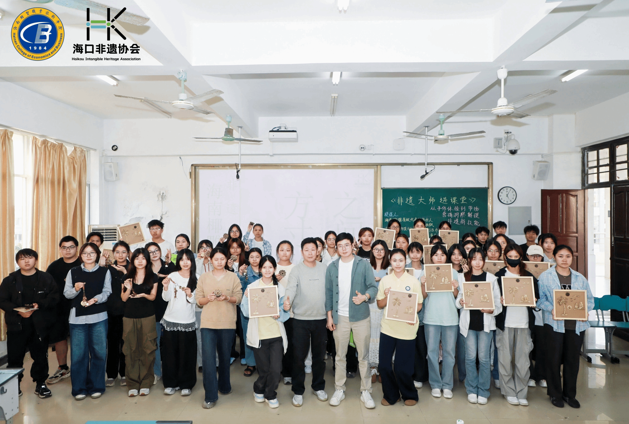 此外,为推动非遗文化与现代产业的深度衔接,还邀请海口非遗协会会长黄垚森围绕 “非遗 IP 的现代化转型与营销策略” 展开专题分享。黄会长以真实案例为依托,从品牌定位、产品创新、渠道拓展等多个维度,为同学们揭示了非遗文化实现市场价值转化的密码。